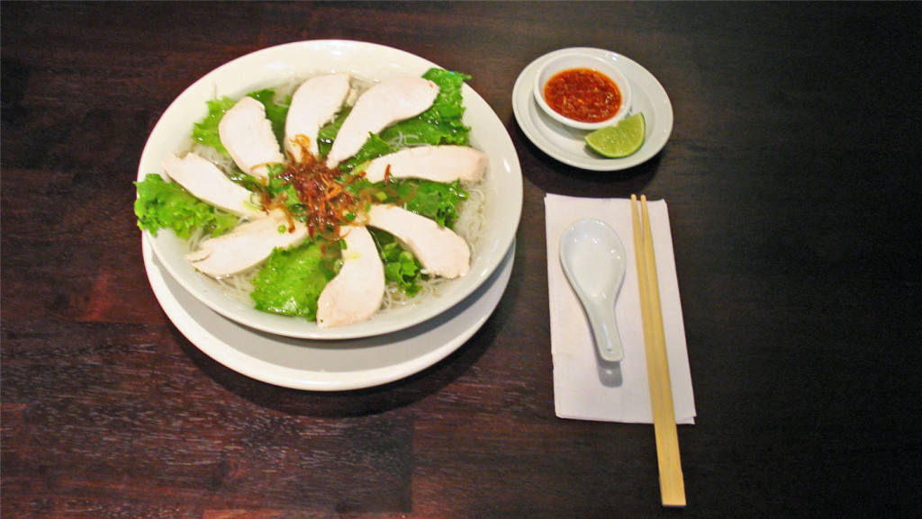 Spicy beef, pork w/thick vermicelli noodle soup $ 15.95